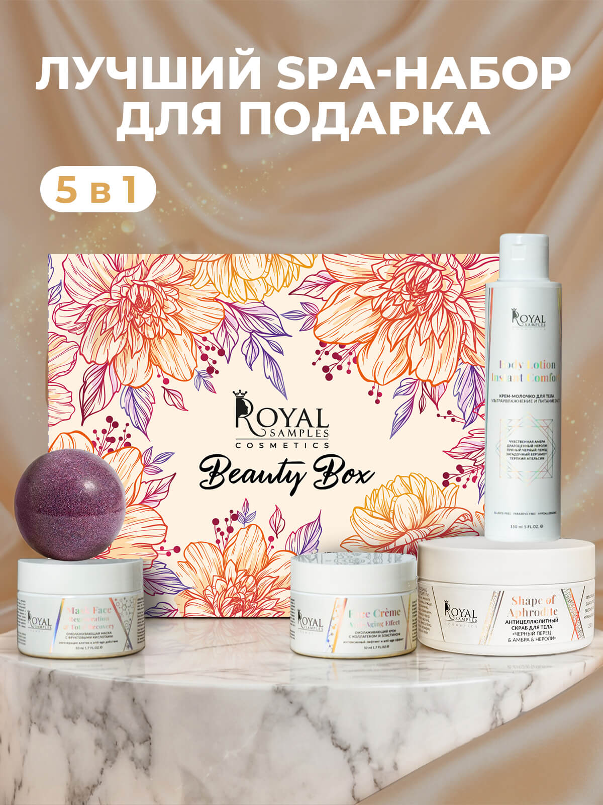Откройте для себя истинное наслаждение ухода и роскошь с коробочкой "СПА РИТУАЛ КРАСОТЫ". Этот набор станет вашим надежным партнером в ритуале красоты, предлагая полный комплект продуктов для SPA дома.